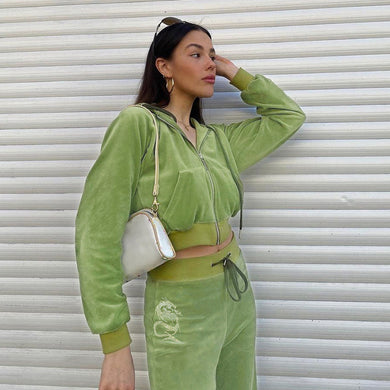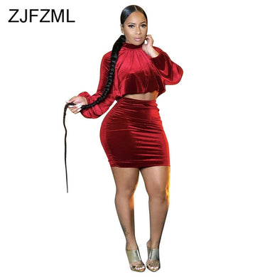 Velour Two Piece Diamond Letter Crop Skirt Set