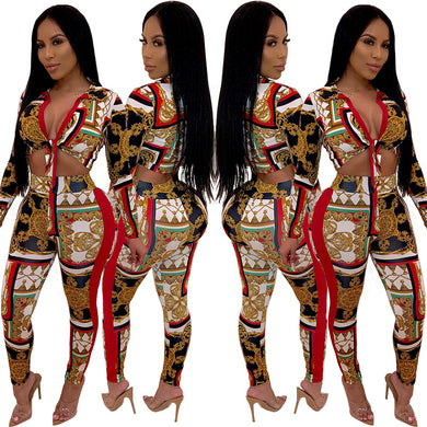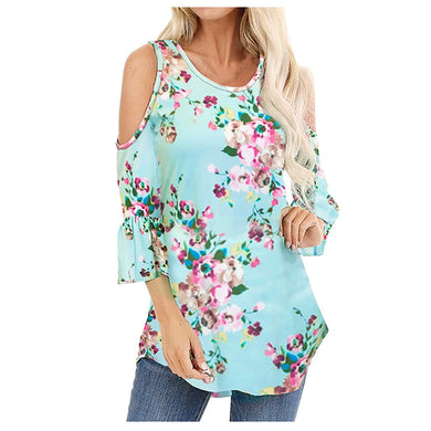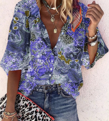 Floral V-Neck Zippered Long-Sleeved T-Shirt