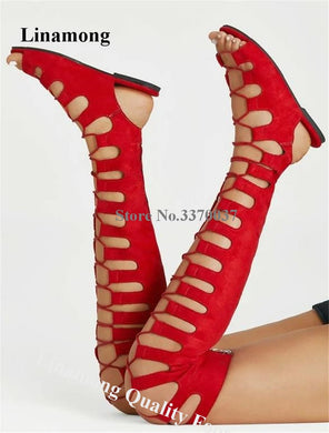Suede Slim Over The Knee Flat Heel Gladiator Boots