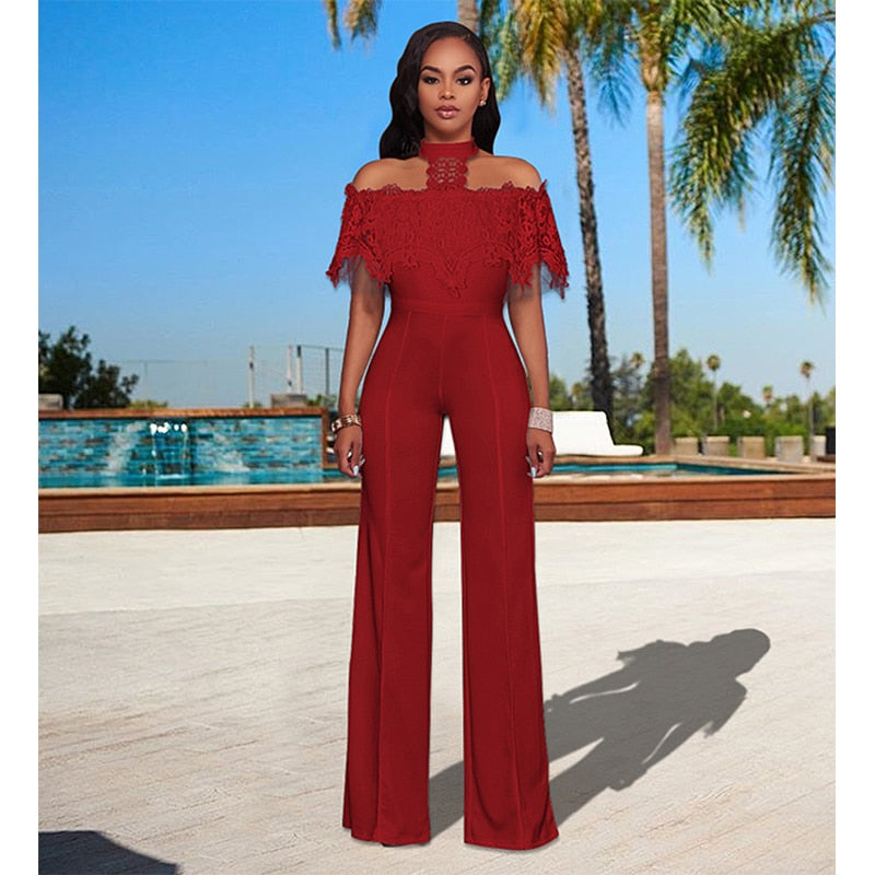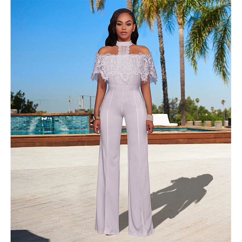 Elegant Wide Leg Off The Shoulder Laced Jumpsuit