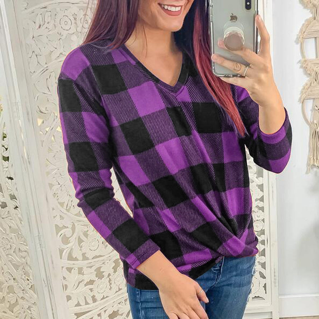 • Load image into Gallery viewer, Twisted Long Sleeve Plaid Shirt
