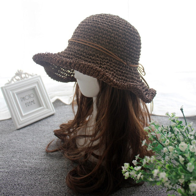 Knotted Accent Straw Foldable Beach Hat
