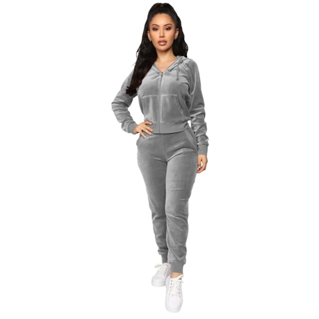 • Load image into Gallery viewer, Velour Hooded Jogger Set